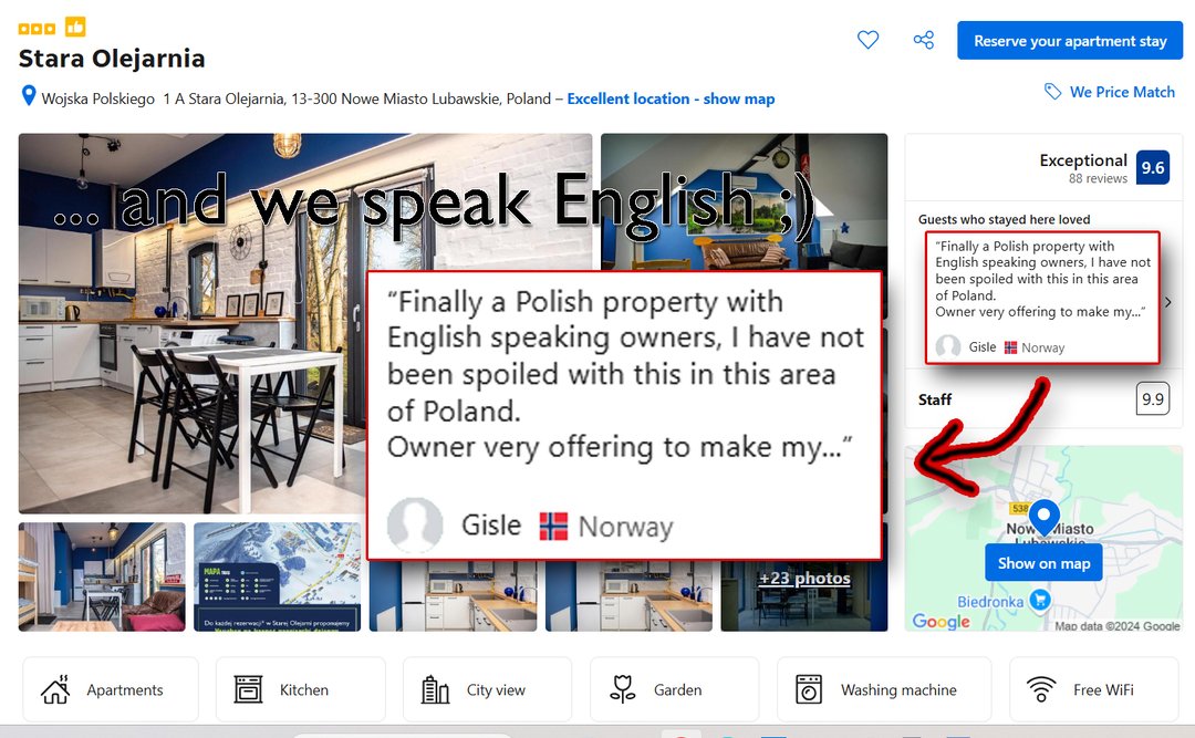 Witamy w Starej Olejarni! Stara Olejarnia to unikalne miejsce gdzie zatrzymać się mogą amatorzy sportów zimowych czy kajakarstwa oraz wszyscy, którzy poszukują miejsc z charakterem. Budynek powstał w roku 1910 i do lat 1970-tych funkcjonował jako olejarnia. W roku 2021, wnętrza zostały wyremontowane i powstał komfortowy obiekt noclegowy z dwoma w pełni wyposażonymi apartamentami dla łącznie 8 osób. Wokół obiektu jest darmowy parking oraz duży ogród z szerokim dostępem do rzeki Drwęcy. Stara Olejarnia znajduje się 5 minut jazdy od kompleksu narciarskiego Kurza Góra i blisko innych lokalnych atrakcji turystycznych, a jednocześnie w centrum miasta, więc można po prostu iść do kina, restauracji czy browaru albo zwiedzić XIV-wieczną bazylikę.